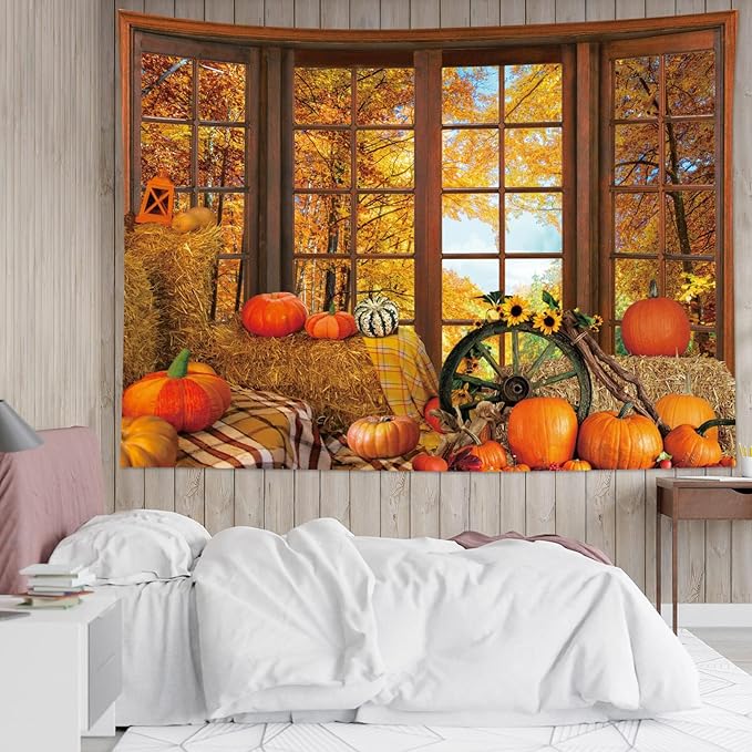 壁に紅葉のタペストリーを貼れば外出した気分になれそうです。