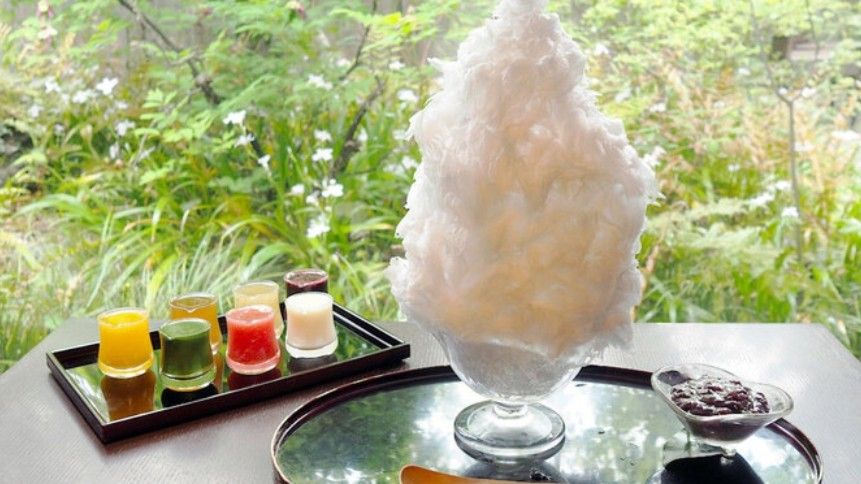 天然氷を使用したかき氷が有名で、夏の週末は数時間待ちの行列ができるほどです。