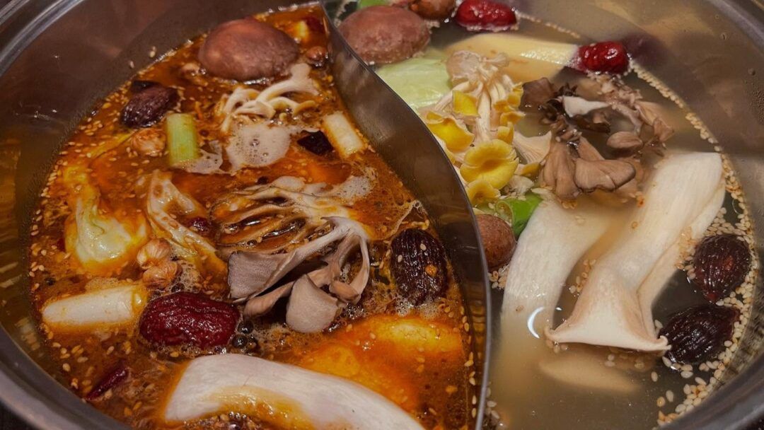スープは二種類選べ、両方とも別の種類の辛くないスープを選ぶこともできます。