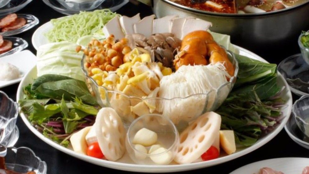 薬膳鍋とは色々な漢方薬やスパイスをスープで煮込んだ、野菜やキノコがたっぷり入ったお鍋です。