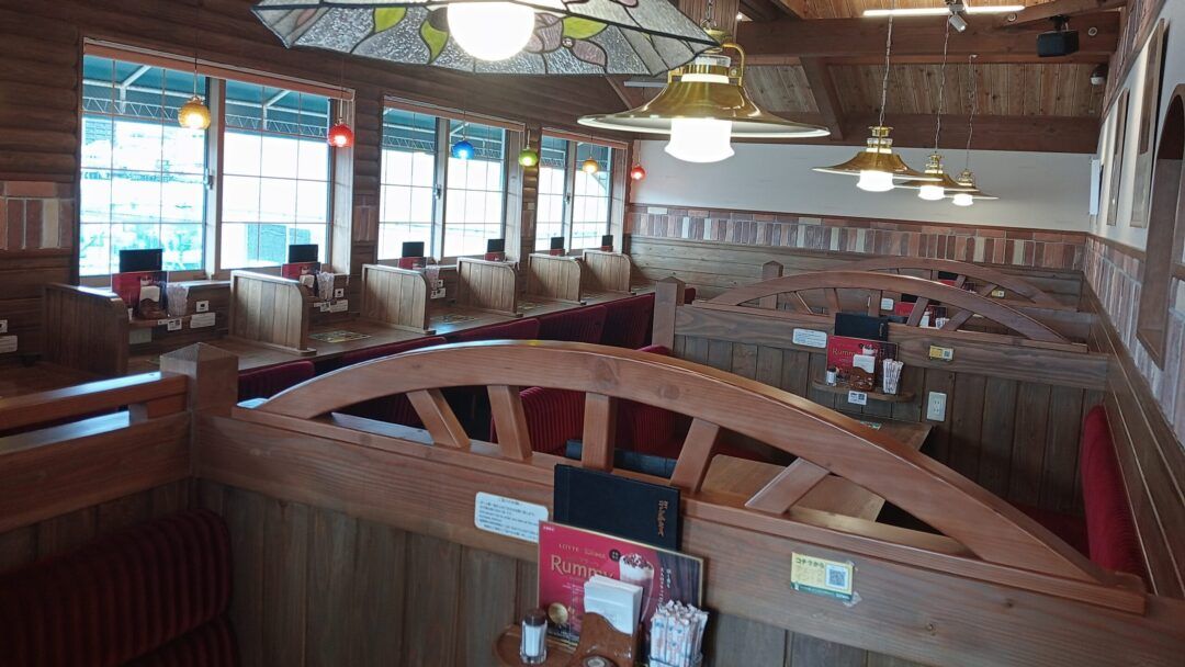 1階は他店と変わらない雰囲気ですが、二階は床が絨毯で、木の色味も濃く、他よりも高級感のある空間です。