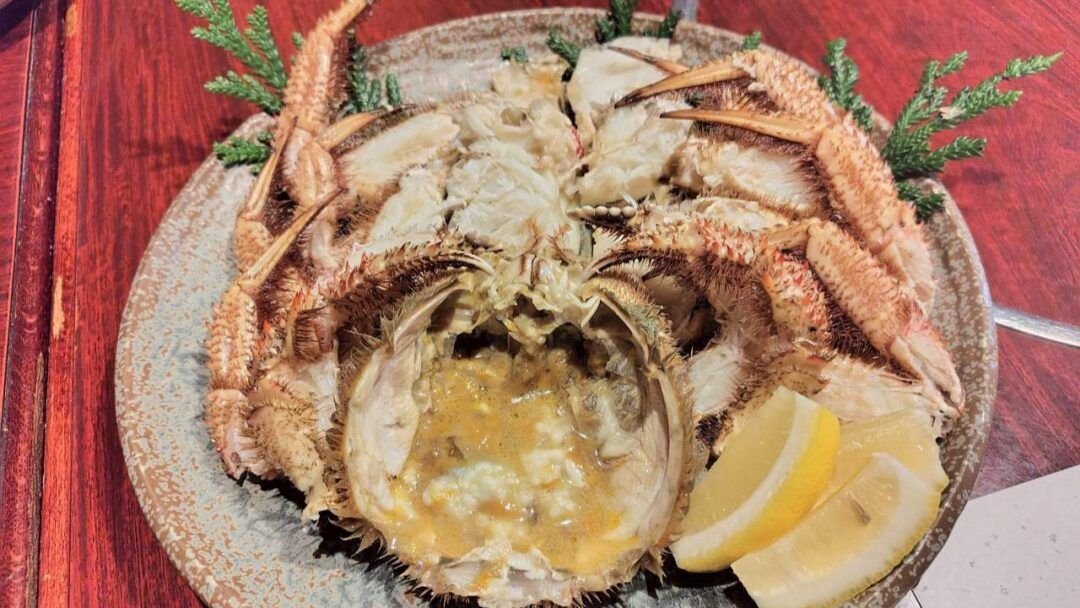 カニも直前まで泳いでた新鮮なものを茹でや焼きでいただけます。