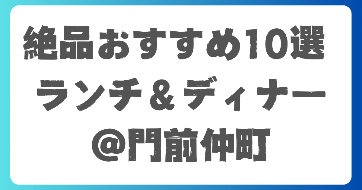 門前仲町駅周辺にある絶品ランチ&ディナーが食べられるお店をまとめました。 レストランから居酒屋まで幅広いジャンルのお店をご紹介しています。 ぜひご参考にしてください! 以下の記事では門前仲町のお近くの駅『清澄白河』『月島』『勝どき』の美味し... -